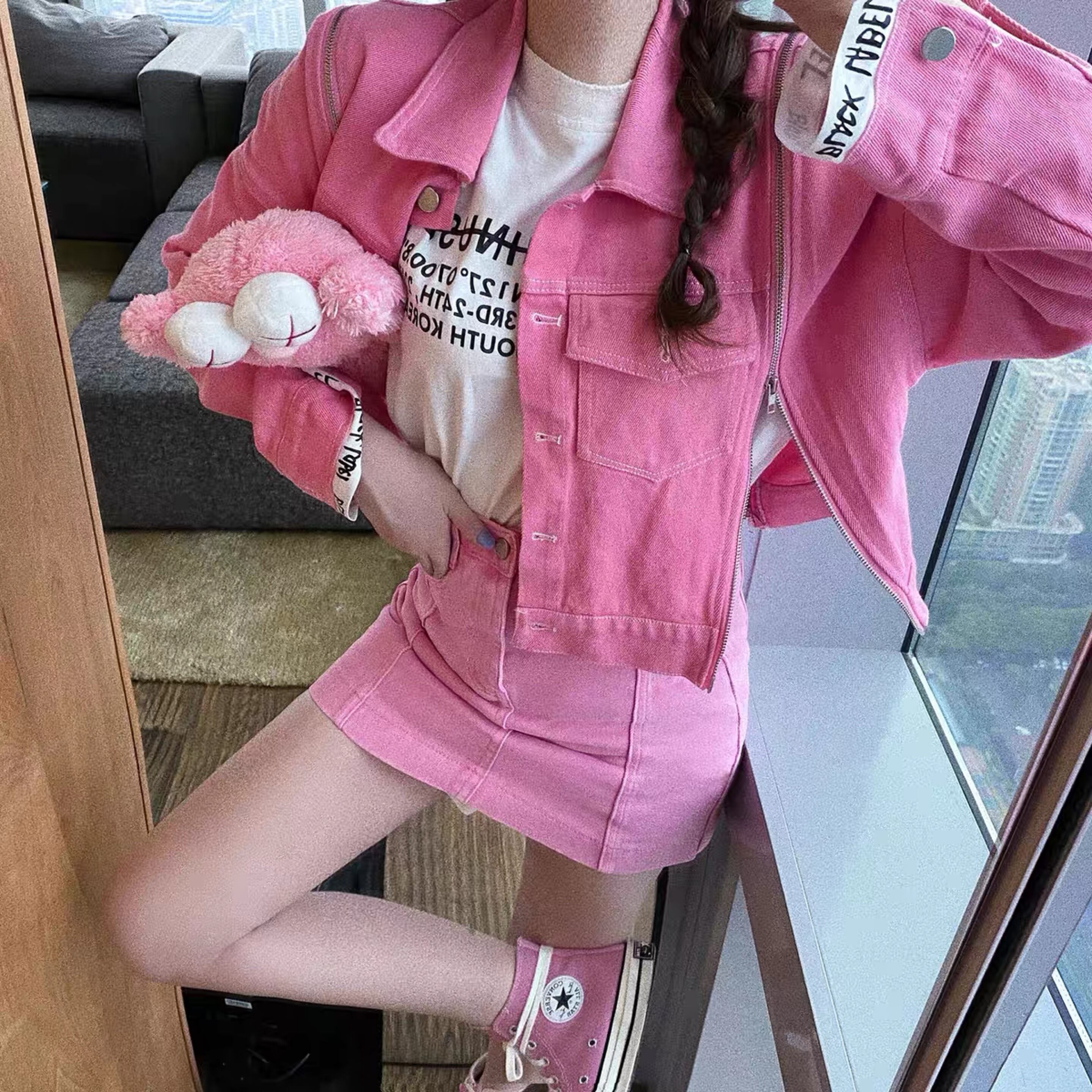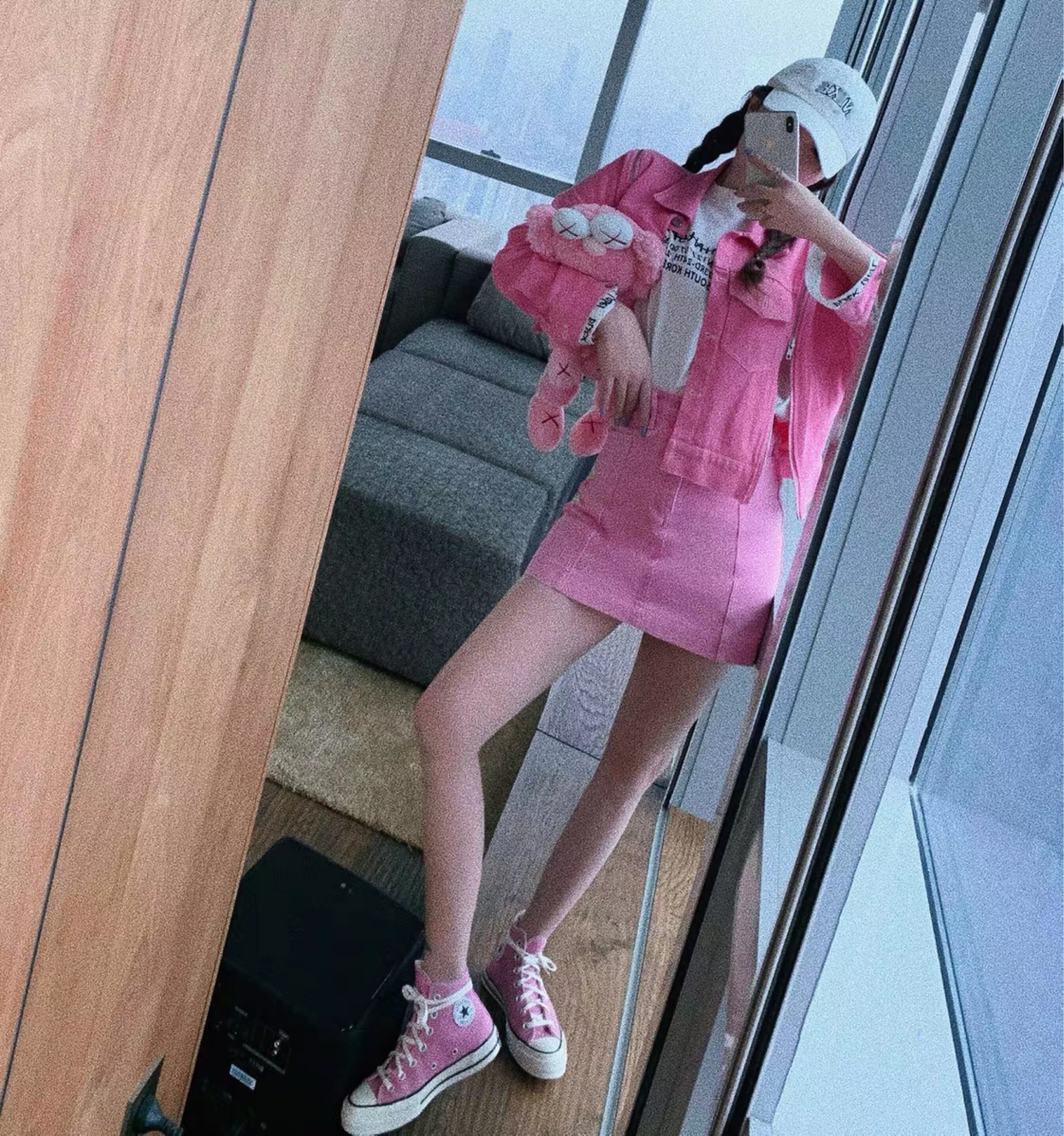 pink denim mini skirt