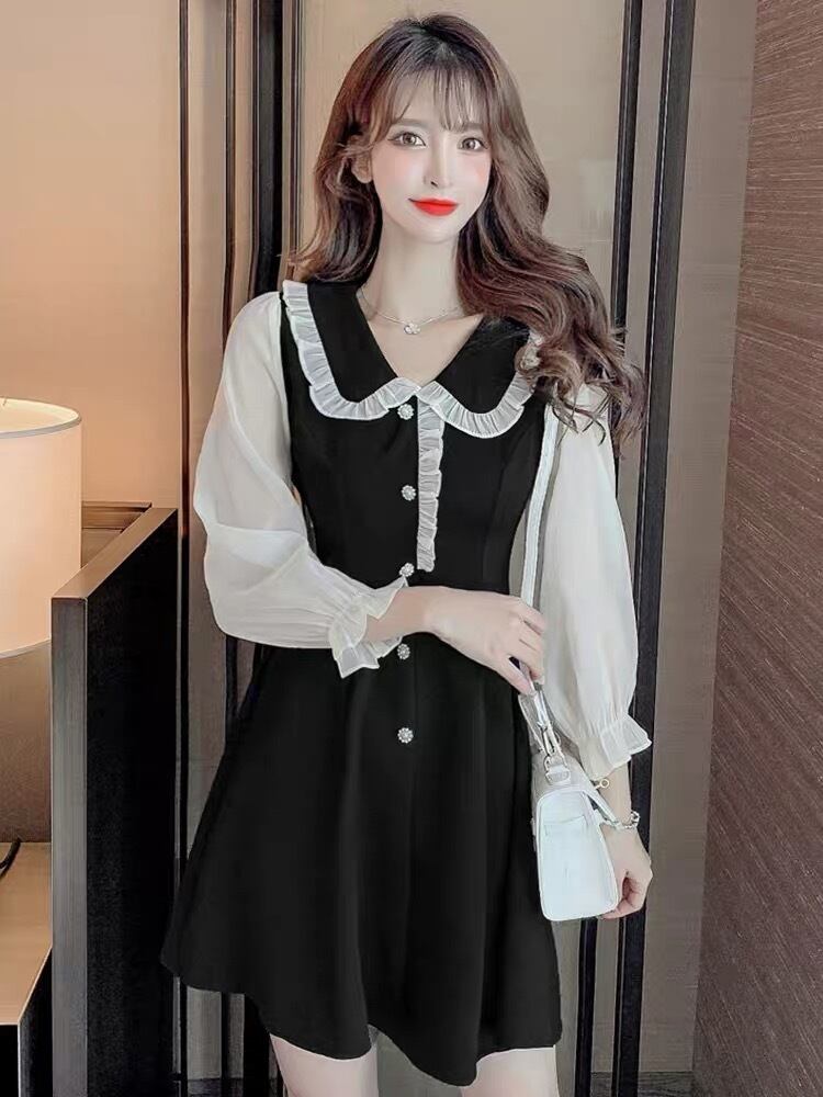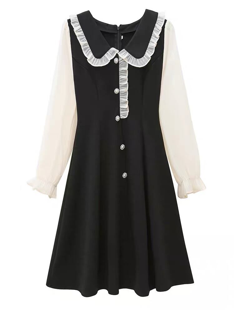 frills neck a-line dress