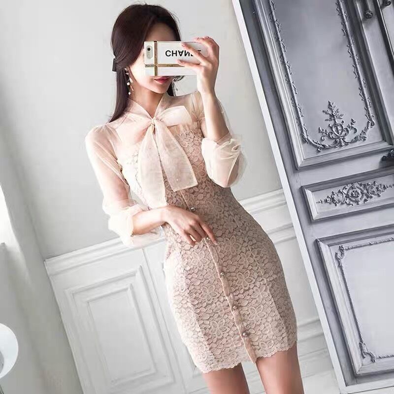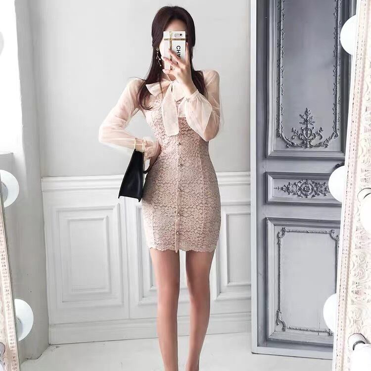 flower frill ribbon mini dress