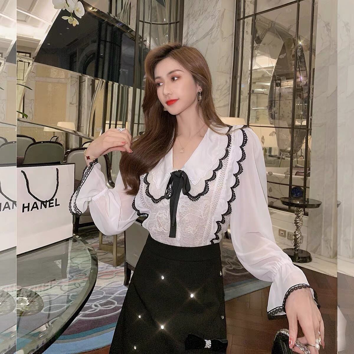 black line white blouse