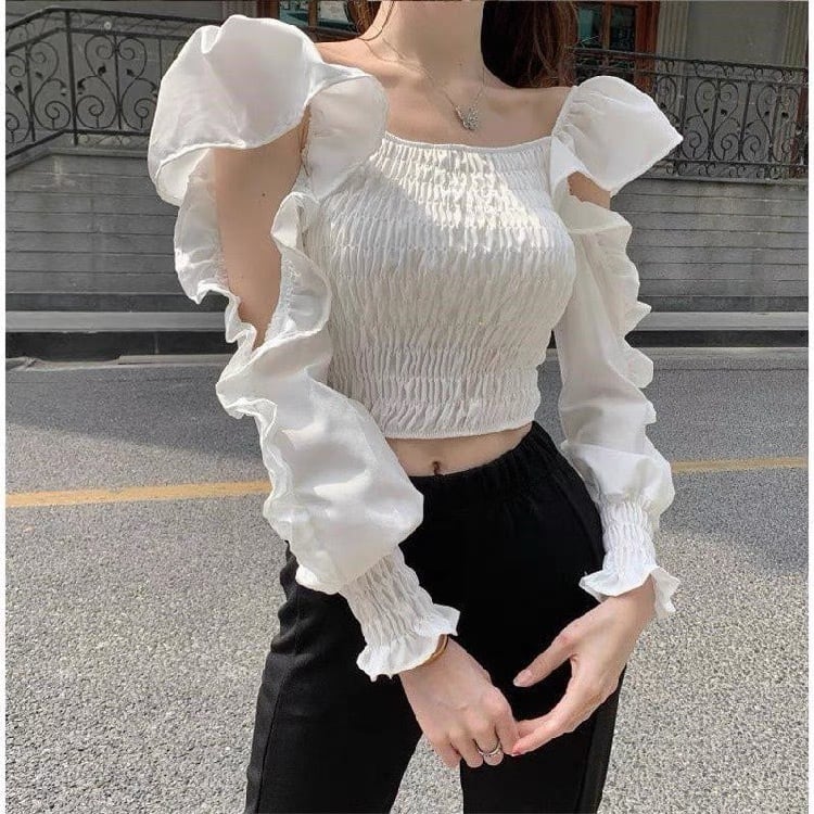 frill sleeve white tops