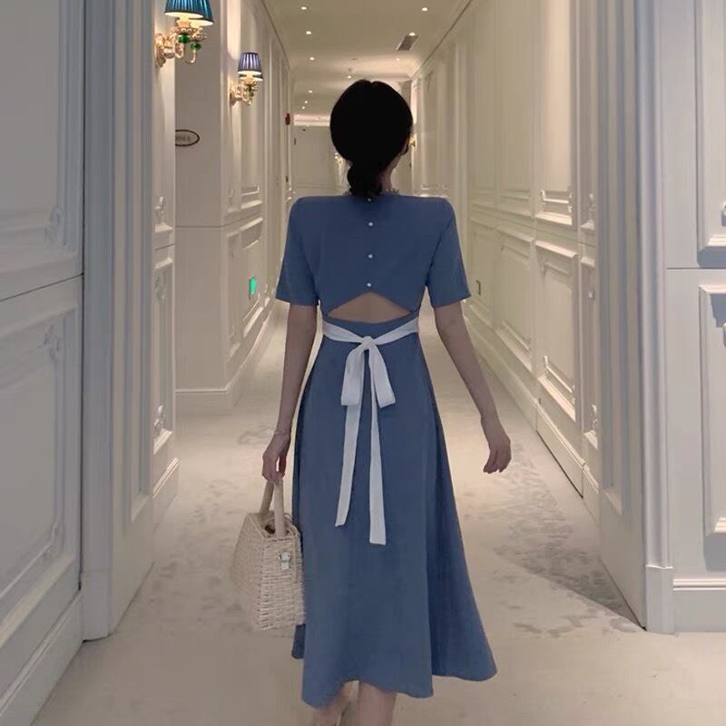 back slit white ribbon dress