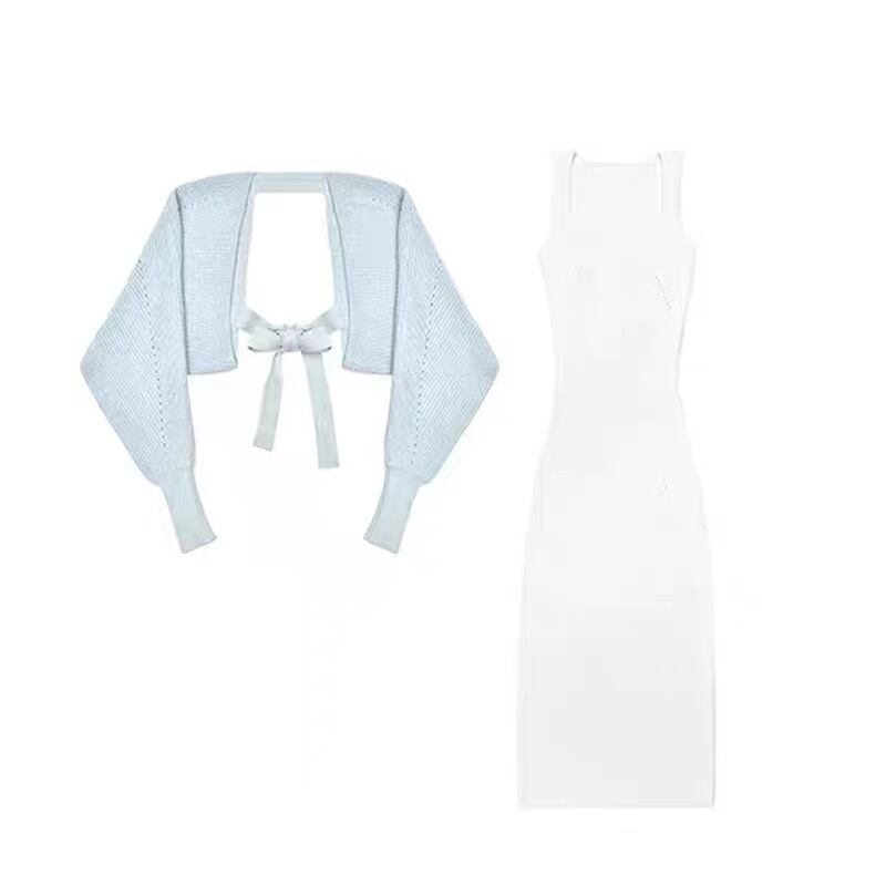 back open cardigan & white dress