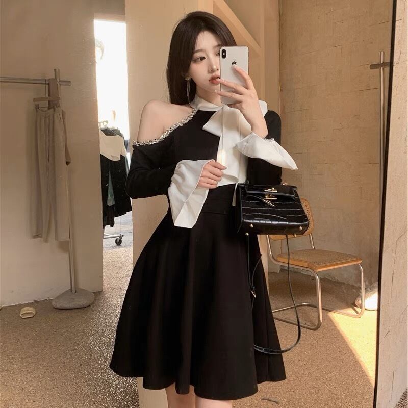 large ribbon one shoulder dress